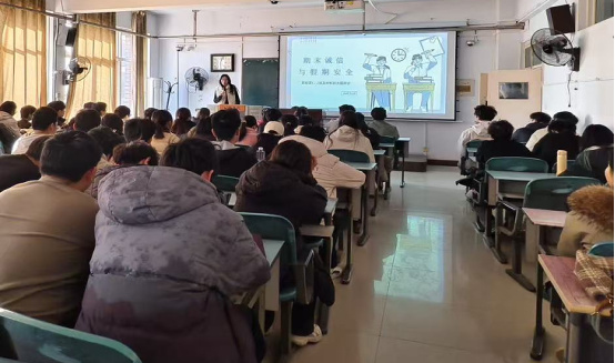 班会中,辅导员老师明确指出诚信考试不仅是校规校纪的硬性要求,更是每一位学生必须坚守的底线;同时,考试也是对本学期学习成果的一次查漏补缺,有助于学生真实地通过检验自身不足。诚信是立身之本,是人最宝贵的无形资产。在假期安全教育环节,辅导员老师特别提醒同学们务必通过正规渠道购票,坚决不乘坐“黑车”,时刻看管好随身财物,注意防盗防骗;安全到家后,应及时报平安。假期居家期间,要时刻保持警惕,严防电信网络诈骗,注意用火、用电安全等等。