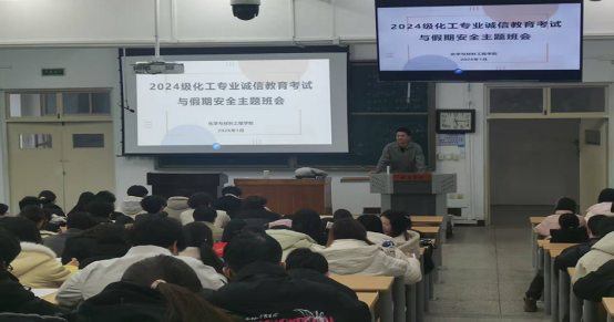 为严肃考风考纪,树立优良学风,同时提升学生的安全防范意识,确保同学们度过一个平和、安全、快乐的新年假期。近日,我院集中开展了“一月一主题”之诚信考试与假期安全教育的主题班会活动。