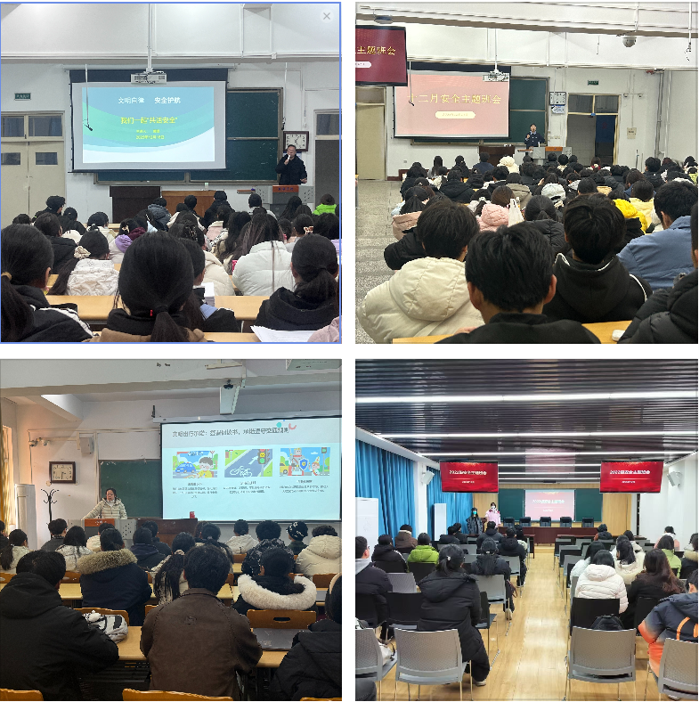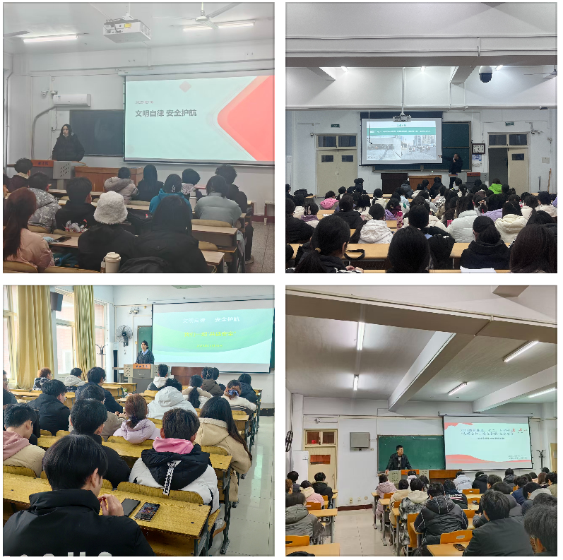 学生安全,重于泰山。为贯彻落实学校学生处《关于召开12月份安全主题班会的通知》要求,进一步增强学生安全防范意识与文明素养,树立文明出行、安全出行理念,共同建设平安、和谐、美丽的校园环境,近日,我院在校学生处的统一指导下,精心组织、周密安排,于12月16日至22日期间,分批次面向全院学生召开“文明自律·安全护航”主题班会。确保教育内容全覆盖、有实效。