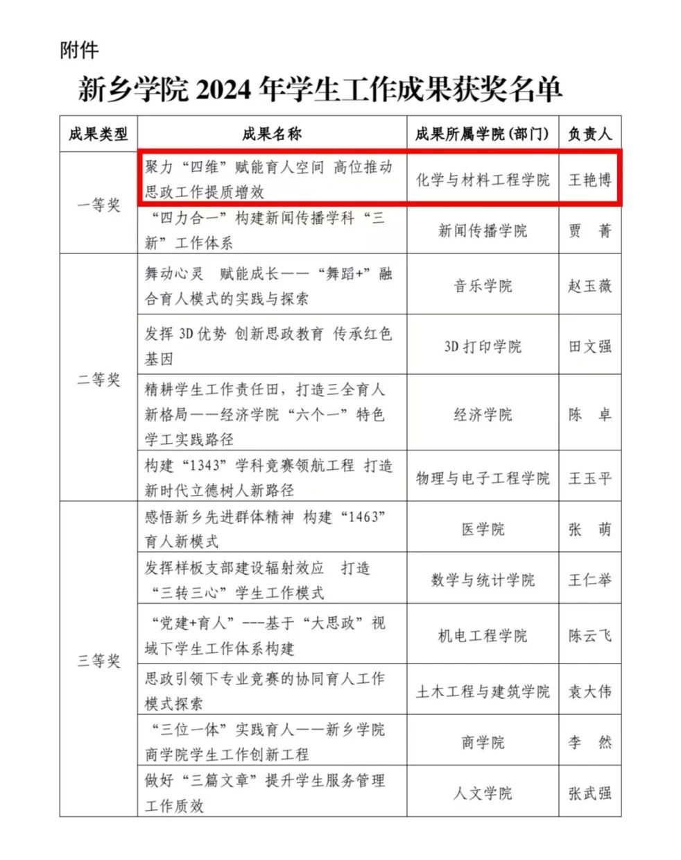 近日,bat365在线官网登录入口公布了 2024 年学生工作成果获奖名单,bat365在线官网登录入口的 “聚力‘四维’赋能育人空间 高位推动思政工作提质增效” 项目脱颖而出,荣获一等奖。这一荣誉不仅是对学院学生工作的高度认可,更是学院在思政育人道路上不断探索创新的有力见证。
